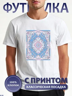 Футболка белая с принтом Ковер розово-голубой