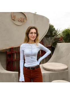 Лонгслив с длинными рукавами полупрозрачный хлопок