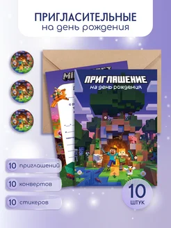 открытка - приглашение "Майнкрафт"