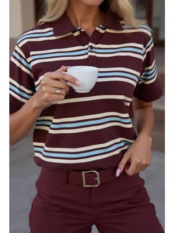 Футболка поло оверсайз в полоску