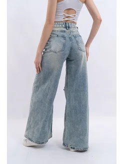 Джинсы палаццо широкие и прямые для девочки y2k летние