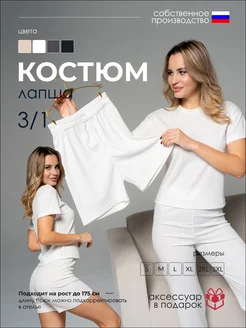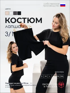Домашний костюм тройка 3 в 1 с брюками и шортами