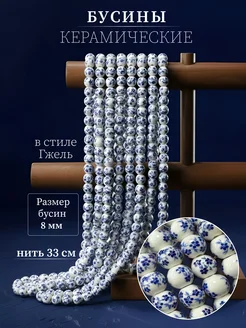 Гжель синяя бусины 8 мм