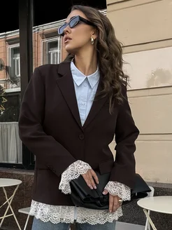Пиджак оверсайз удлиненный c кружевом