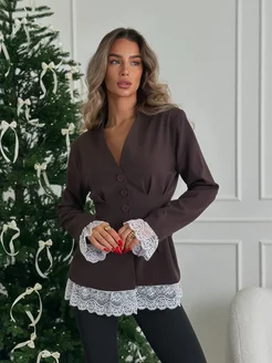 Пиджак приталенный удлиненный с кружевом