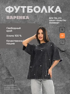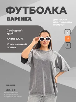 Футболка женская варёнка оверсайз со стразами мишки