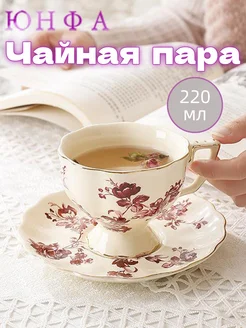 Чайная пара чашка с блюдцем кружка красивая 220 мл
