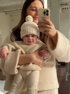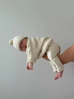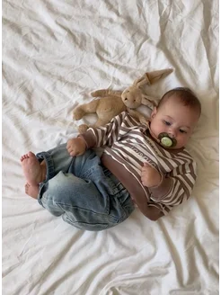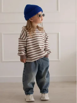 Джинсы для малышей оверсайз серо-голубые с вышивкой