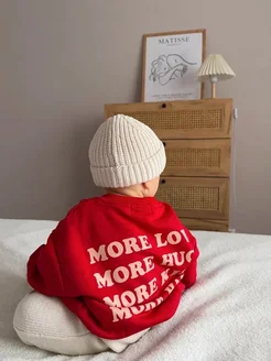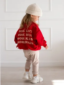 Свитшот для малышей оверсайз из футера, красный с принтом