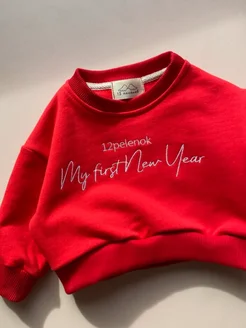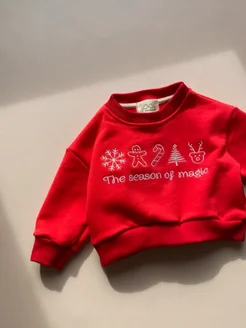 Свитшот новогодний для малышей оверсайз из футера, красный