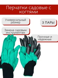 Перчатки садовые с покрытием и когтями для огорода 3 пары