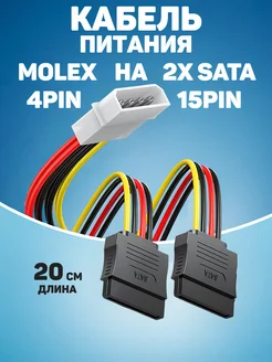 Кабель питания SATA 15см Molex 4pin на 2x SATA 15pin
