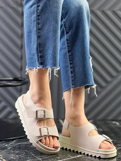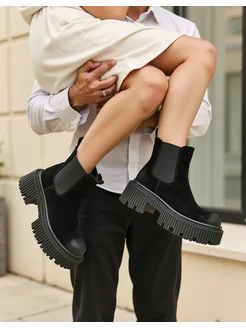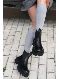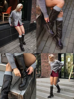 Сапоги трубы демисезонные кожаные на низком каблуке