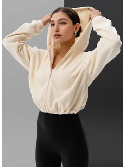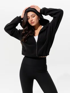 Флисовая кофта худи укороченная с капюшоном теплая