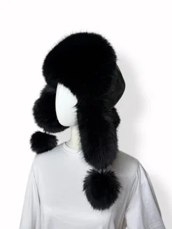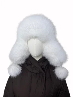 Шапка ушанка зимняя меховая эко песец с помпонами