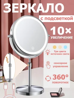Зеркало настольное с подсветкой увеличением х10 адаптером