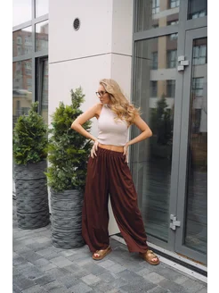 брюки летние палаццо на резинке широкие