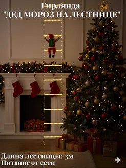 Новогодняя гирлянда светодиодная Дед Мороз на лестнице