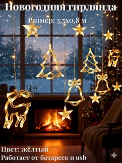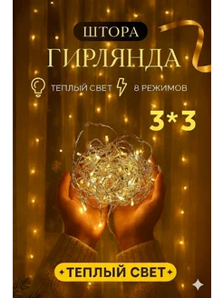 Гирлянда штора новогодняя 3x3 занавес
