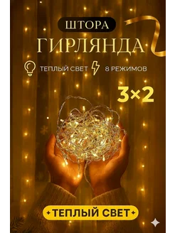 Гирлянда штора новогодняя 3x2 занавес