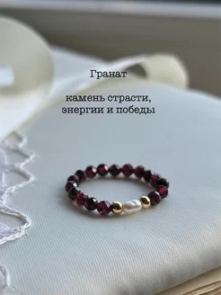 Кольцо из камня гранат с жемчугом