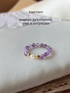 Кольцо из камня аметист с жемчугом