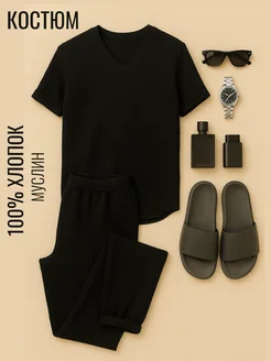 Костюм с брюками муслиновый домашний
