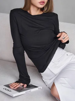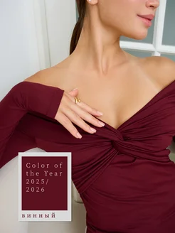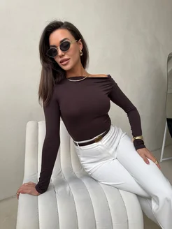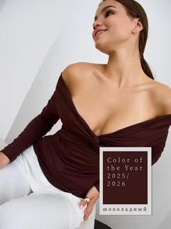 Лонгслив с открытыми плечами и драпировкой шоколадный