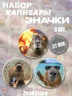 Значки Капибара набор 37 мм 3 шт