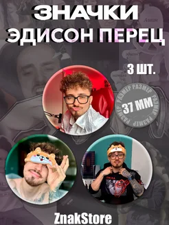 Значки Эдисон Перец 37мм 3 шт