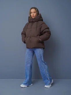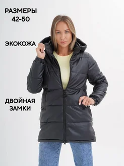 Куртка зимняя удлиненная с капюшоном из экокожи