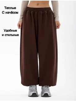 Спортивные штаны джоггеры широкие оверсайз начесом