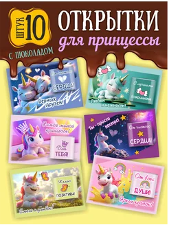 Подарок девочке — шоколадные открытки с единорогом 10 шт