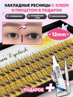 Накладные ресницы пучками самоклеящиеся пинцет в подарок