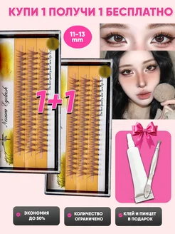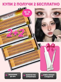 Накладные ресницы пучками с клеем и пинцетом 2 коробки