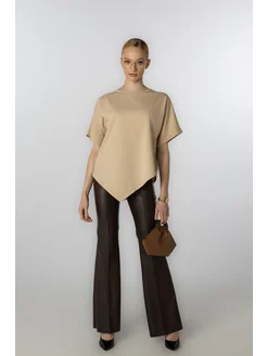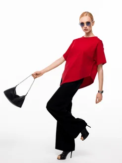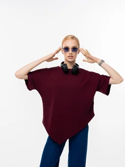 Футболка оверсайз однотонная из хлопка, асимметричная