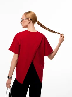 Футболка оверсайз с запахом на спине из турецкого хлопка