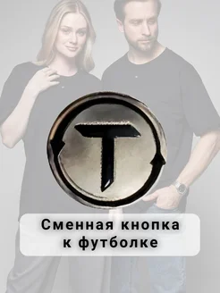 Кнопка брошь с рисунком буква т на футболку