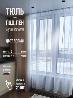 Тюль под лён в спальню и гостиную 1.5х250 длинная