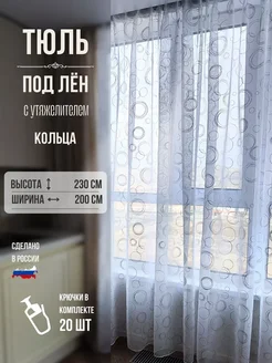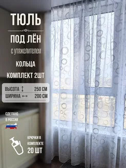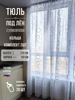 Тюль под лен в гостиную 150х270 2шт белая с рисунком круги