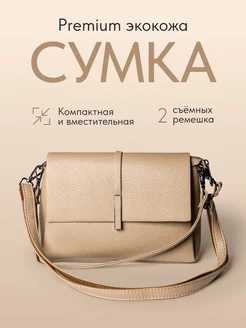 Сумка через плечо кросс-боди кожаная бежевая