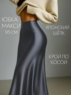 Юбка атласная макси длинная в пол сливочное масло осень 2025