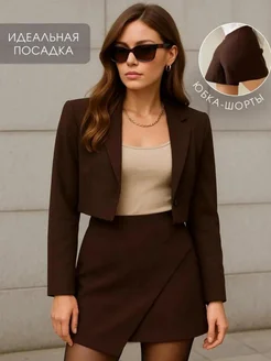 Юбка атласная МИДИ 80 см шелковая коричневая на резинке