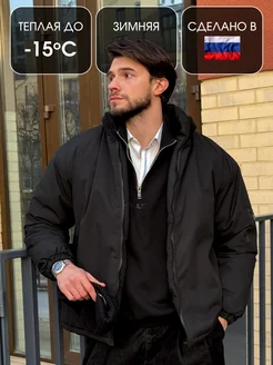 Куртка с капюшоном зимняя с воротником-стойкой