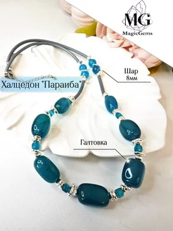 Бусы халцедон и турмалин Колье