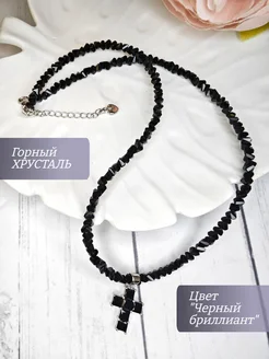 Колье из хрусталя цвет "Черный бриллиант" Крест