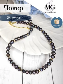 Чокер жемчуг натуральный и гематит