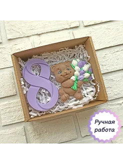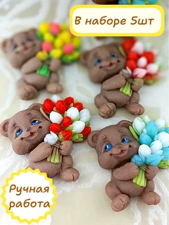 Набор из мыла на 8 марта Мишка с тюльпанами 5шт