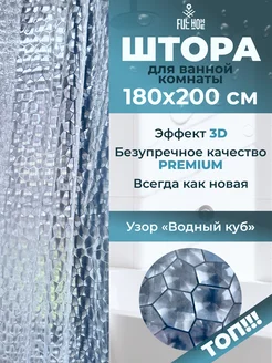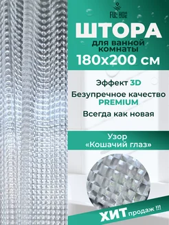 Штора для ванной 180х200 водонепроницаемая на люверсах