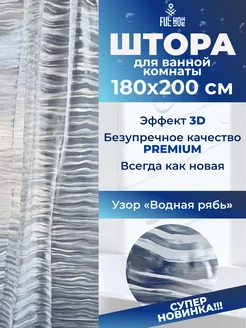 Штора для ванной 180х200 см водонепроницаемая на люверсах